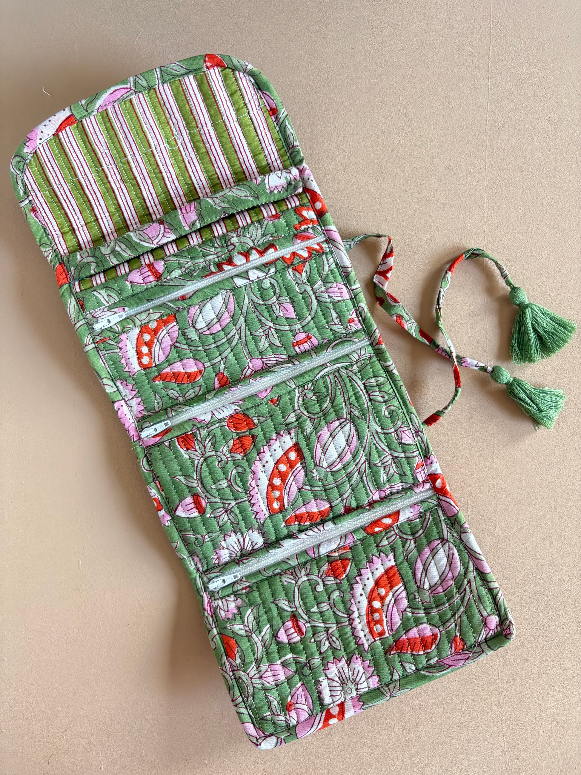 Dit vrolijke, handgemaakte sieradentasje is ideaal om je sieraden en kleine spulletjes overzichtelijk mee te nemen.